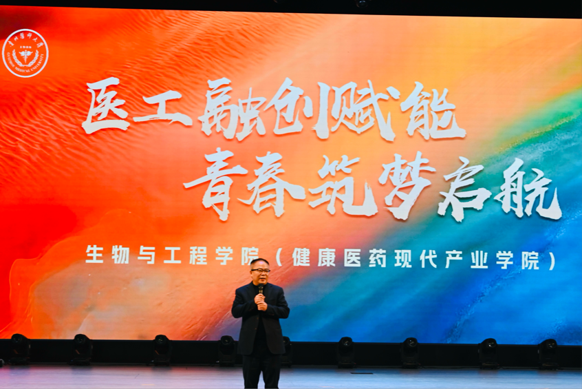 曾柱副校长在致辞中,以温暖而充满力量的话语向2025级新同学表达了最诚挚的欢迎。他娓娓道来,生动阐述了学院医工融合的鲜明办学特色,与在场师生共同回顾了学院多年来砥砺奋进的发展历程,并对学院在人才培养、科学研究等方面取得的丰硕成果给予了高度肯定。