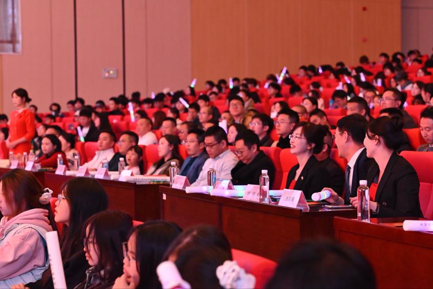 “聚力归航,生情薪火相传”篇章中,热烈氛围持续升温,合唱团的表演奏响希望的乐章,《祖国不会忘记》《如愿》旋律激昂,歌声中满含对祖国赤诚,音符里都盛满对未来的美好期许;教工民族服饰走秀《霓裳织梦 民族华章》独具匠心,多彩服饰映照着各民族的文化印记,表演者们自信昂扬的步伐踏响文化传承的节拍;歌曲《爱的主打歌 》旋律动听,歌手们清澈嗓音中真挚的感情传递着青春的热血与憧憬;情景朗诵《山河无恙 勿忘国耻》用庄严肃穆之姿铺展历史长卷,牵引观众回溯那段风雨如晦的岁月,这一刻炽热的家国情怀跨越时空,在每个人心中激荡。