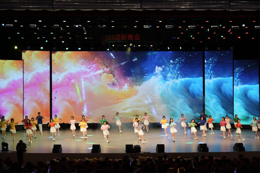 晚会在现场观众整齐又充满期待的倒计时声里正式帷幕,开场舞《青春有你》活力满溢,舞者们用灵动的舞姿,将青春的朝气与蓬勃展现的淋漓尽致,瞬间点燃全场气氛,为晚会奠定了欢快热烈的美好基调。
