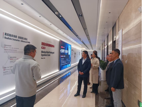 学院一行首站到访迈瑞医疗,实地参观了企业展厅与全球培训体验中心,系统了解了其在生命监护、体外诊断、医学影像等领域的创新产品线、全球业务布局及系统化的人才培训体系。在随后举行的座谈会上,学院着重介绍了医工复合型人才的培养定位、专业特色及毕业生情况。迈瑞方面高度认可学院的人才培养方向,并强调,在从研发制造到临床支持的全产业链中,持续需要具备扎实学科基础与工程实践能力的专业人才。双方就联合共建校内实训基地、组织学生赴企业开展项目制实习、推动课程内容与企业技术标准衔接等方面进行了务实且富有成效的探讨,并达成初步合作意向,旨在协同培养更贴合产业实际的高素质应用型人才。