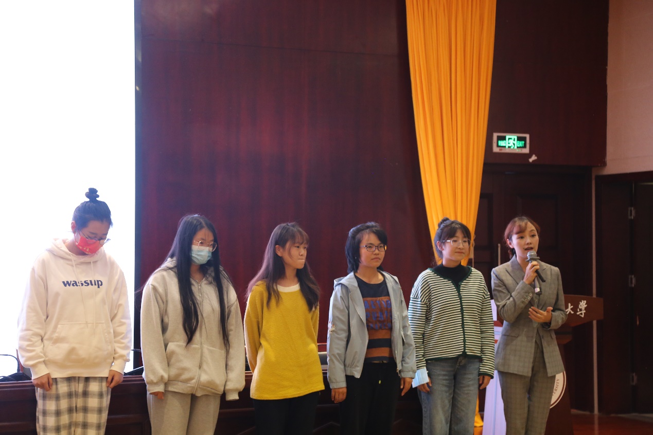 龙珏老师从礼仪概念、礼仪内容、礼仪注意事项等方面,向同学们讲解了不同场合下的礼仪要求和行为规范。随后,龙珏老师亲身示范,邀请同学们上台互动体验,从站、坐、走、蹲、礼让、手势等多个方面讲解了不同交往场景下的礼仪规范。在互动过程中,台下的同学们踊跃参与、积极练习,现场气氛活跃。